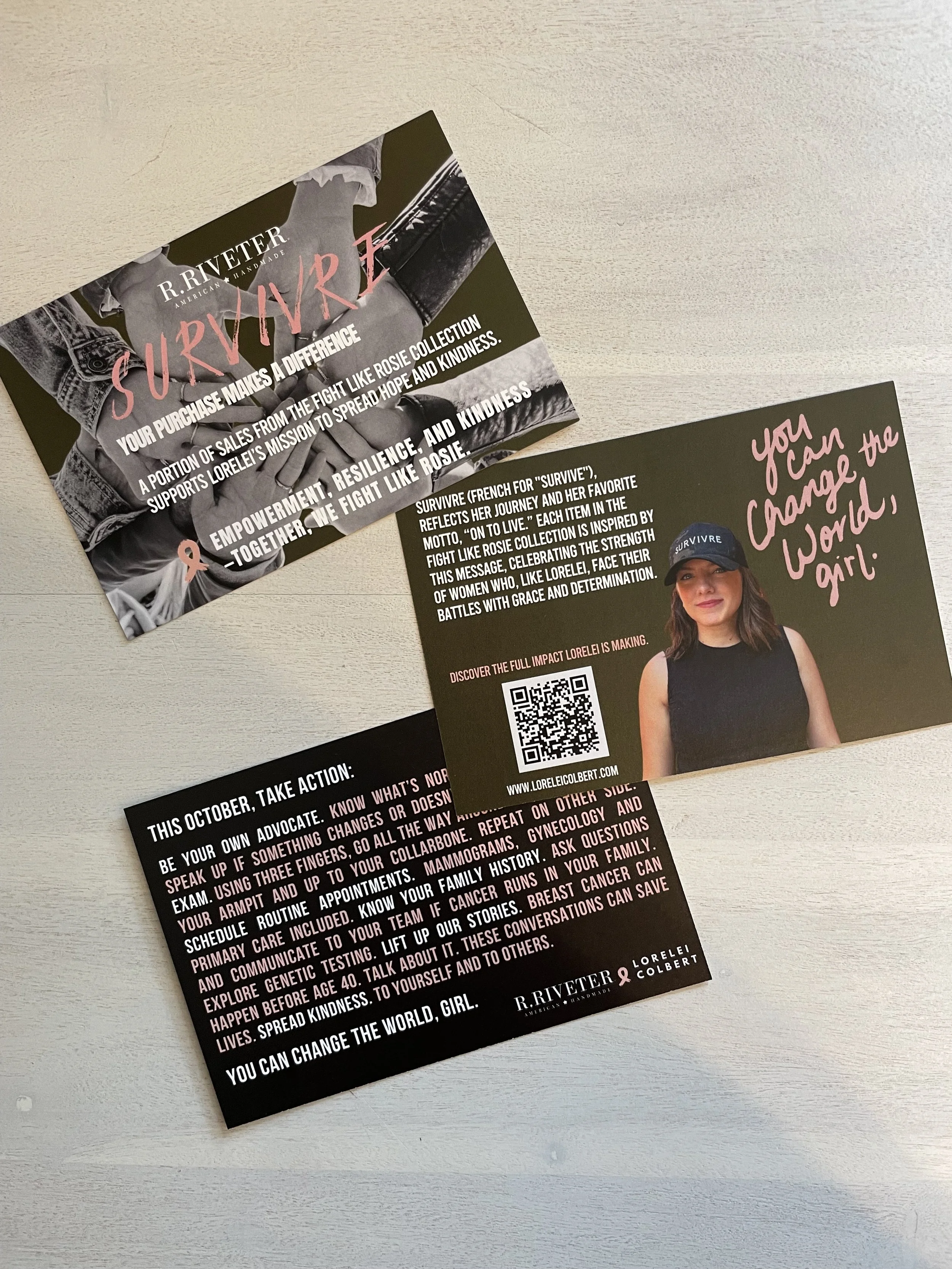 R.Riveter has launched their “Fight Like Rosie” collection, and this year proceeds are benefitting my work as a military spouse and breast cancer survivor. The collaboration celebrates resilience, empowerment and ACTION! I met with the team earlier this year and discussed ideas to make an impact and uplift their community during breast cancer awareness month. I showed them my favorite piece hat included their phrase, “You can change the world, girl.”